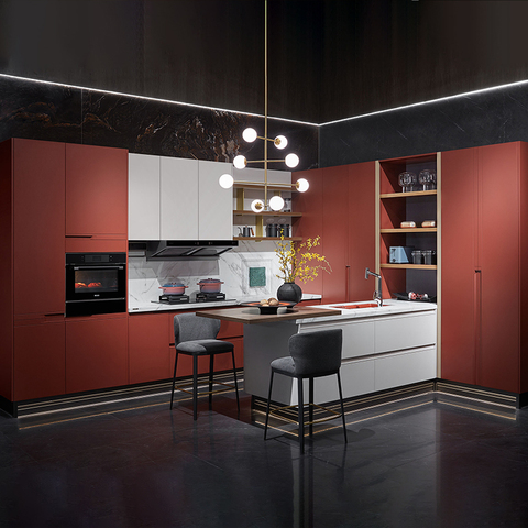 Lüks akıllı F şekli çok fonksiyonlu UV lak ada mutfak dolapları Villa için